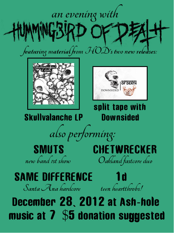 House Of Strange And Wonderful Things has been performed at 1 show and appears on Split tape w/ Downsided