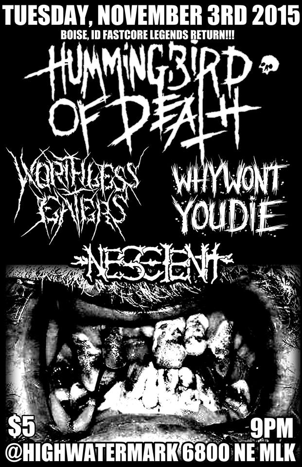 with Why Won't You Die, Nescient, Worthless Eaters, and HOD