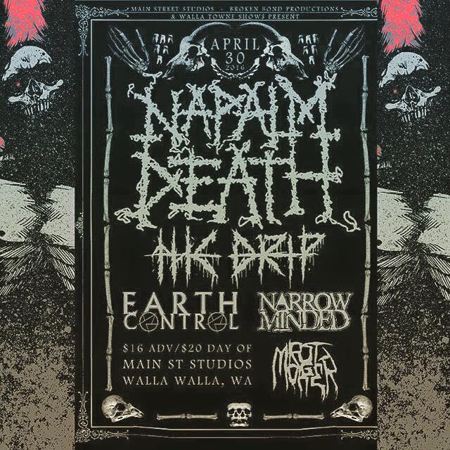 with Rot Monger, HOD, Narrow Minded, The Drip, and Napalm Death (UK)