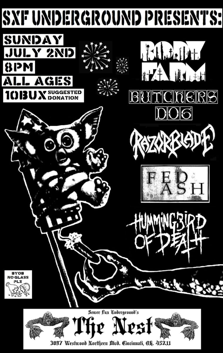 with Hell Hole, HOD, Razorblade (PA), Fed Ash (NY), Body Farm, and Butcher's Dog