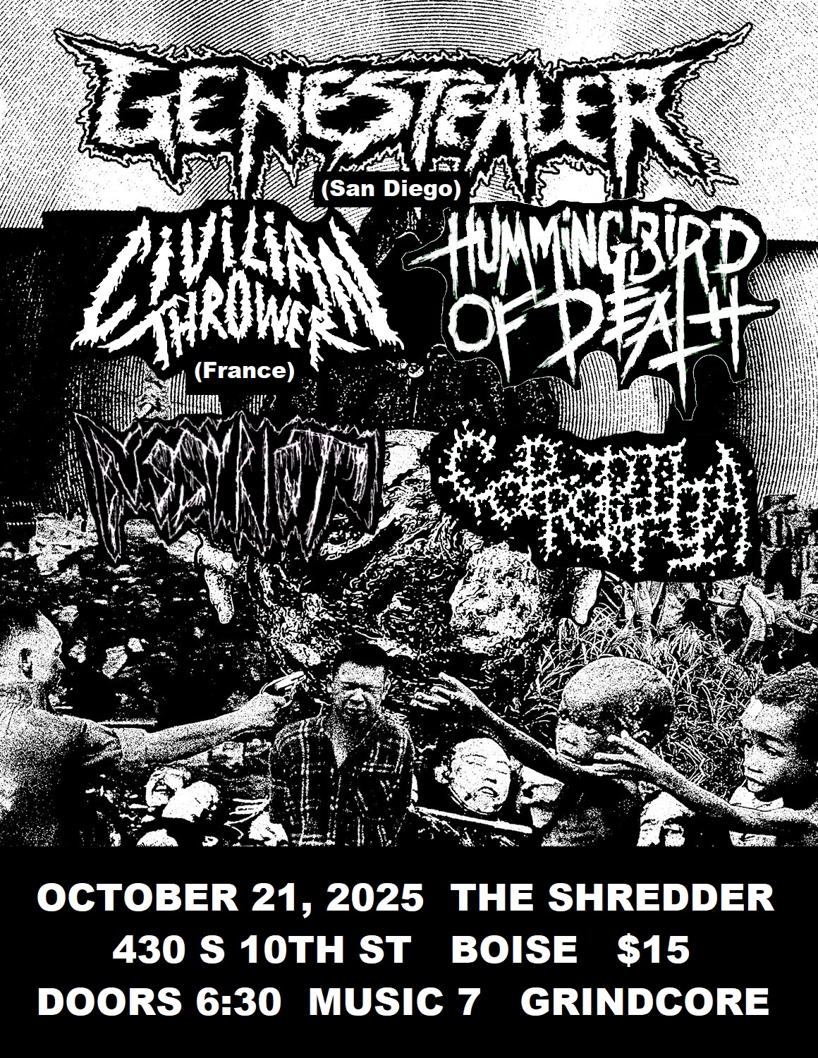 with Bussy Riot, Coprophilia, Civilian Thrower (FRA), Genestealer (CA), and HOD